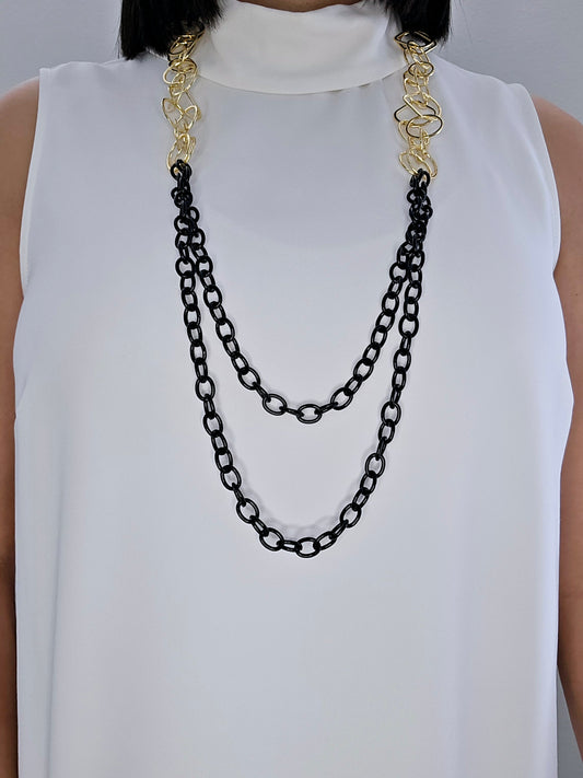 Collar doble cadena negra, con eslabones dorados, largo