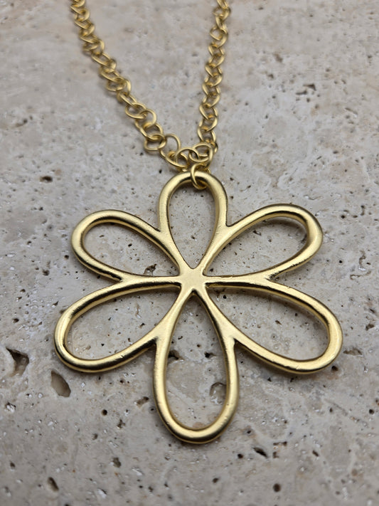 Collar flor colgante, color oro, largo