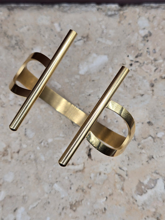 Brazalete círculos perforados, en broce, con baño en oro 24k.