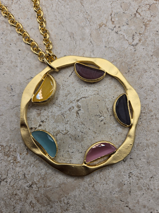 Collar cinco medias lunas de piedras ágata, color oro, largo
